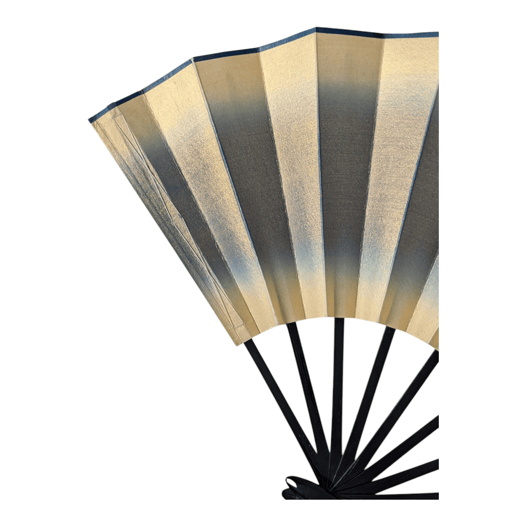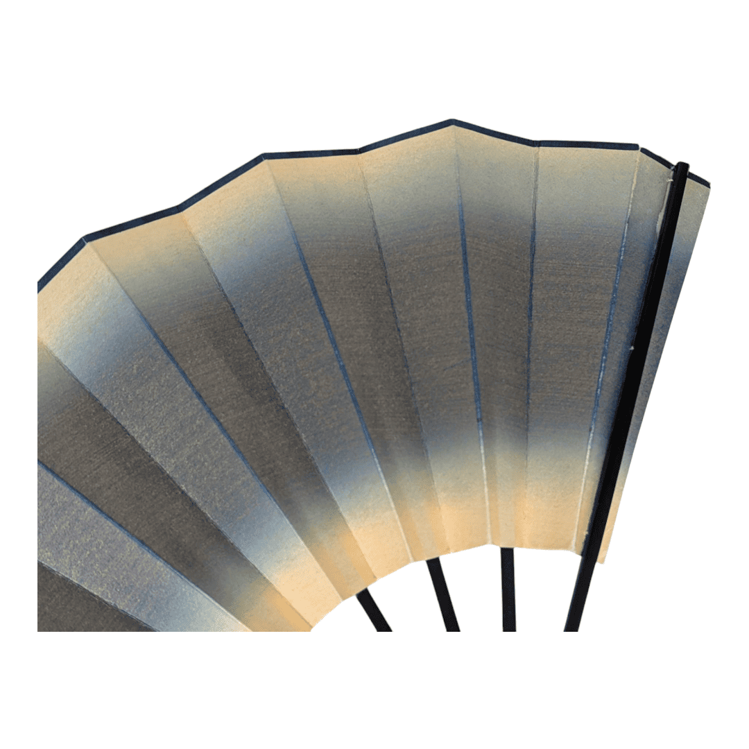 Dieser elegante Sensu-Fächer überzeugt durch sein schlichtes, aber raffiniertes Design: Ein sanfter Farbverlauf aus Blau, Gold und Creme verläuft harmonisch über das gefächerte Papier und verleiht dem Fächer eine ruhige, edle Ausstrahlung. Die gleichmäßige Abstufung der Töne erinnert an Abendstimmung oder Nebel über einer Berglandschaft – ganz ohne konkretes Motiv, aber mit viel Gefühl.