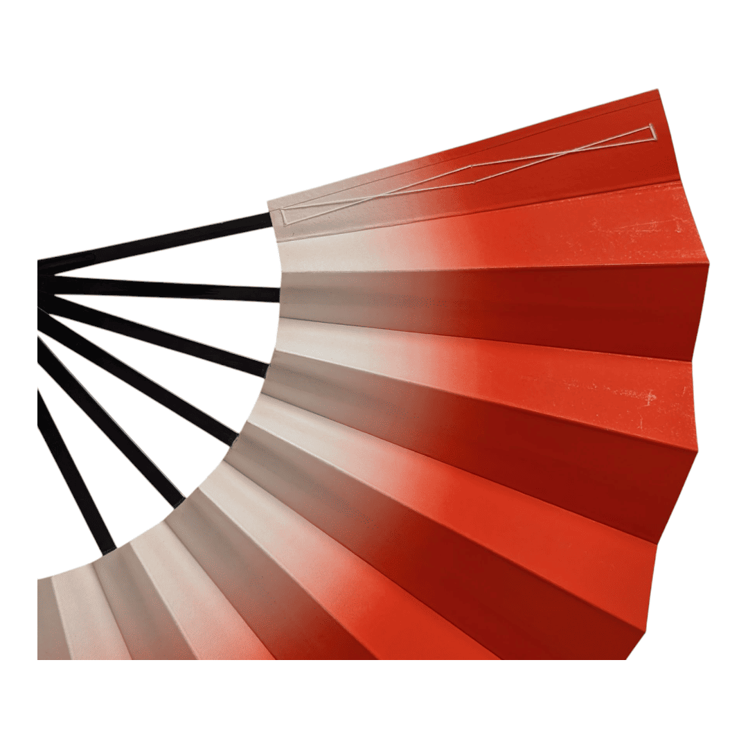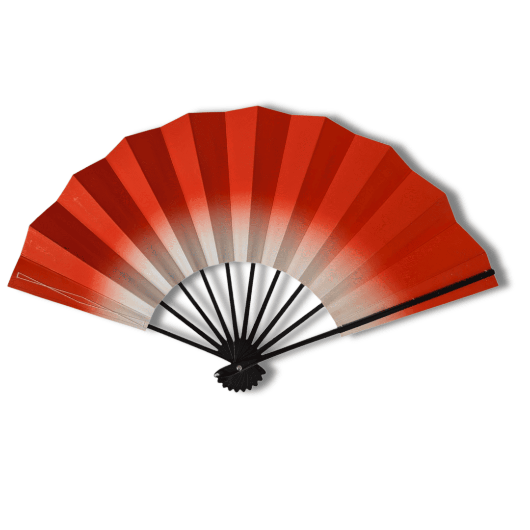 Japanischer Handfächer aus stabilem Papier mit Bambusstreben. Dieser Maiougi ist ein Tanzfächer. Der Fächer hat einen roten Farbverlaf auf beiden Seiten. Stell Dir vor, Du wanderst durch die engen Gassen Kyotos. Die Sonne steht tief, ein warmer Wind streicht durch die Kirschblütenzweige. In Deiner Hand liegt ein Fächer – leicht, elegant, kraftvoll in seiner Farbe. Rot wie die untergehende Sonne. Sanftes Weiß, das an Nebel erinnert, der über einem Bambuswald liegt. Dieser Moment? Zeitlos.