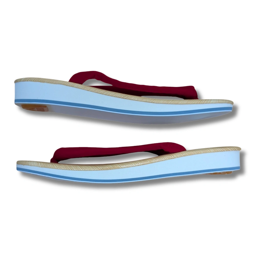 Setta Schuhe mit roten Bändern und einer grauen gummierten Sohle.