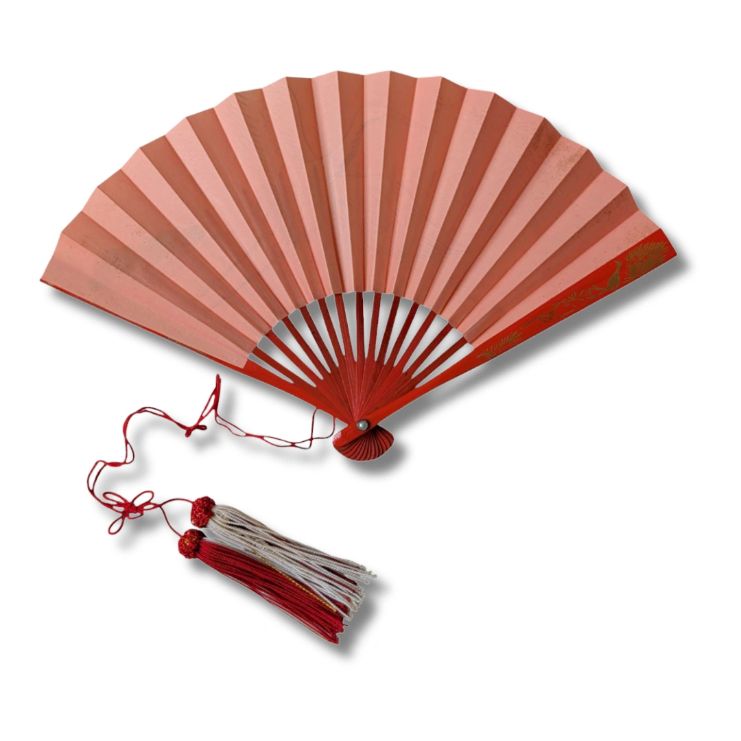 Dieser elegante japanische Fächer zeigt einen Kranich auf zartem Rosa – ein Symbol für Glück, Langlebigkeit und Frieden. Der Kontrast aus kräftigem Rot und sanften Rosatönen lässt das Design besonders lebendig wirken. Die feine Quaste mit Kordel rundet den Fächer stilvoll ab. Ein perfektes Accessoire für besondere Anlässe oder als kunstvolles Sammlerstück.