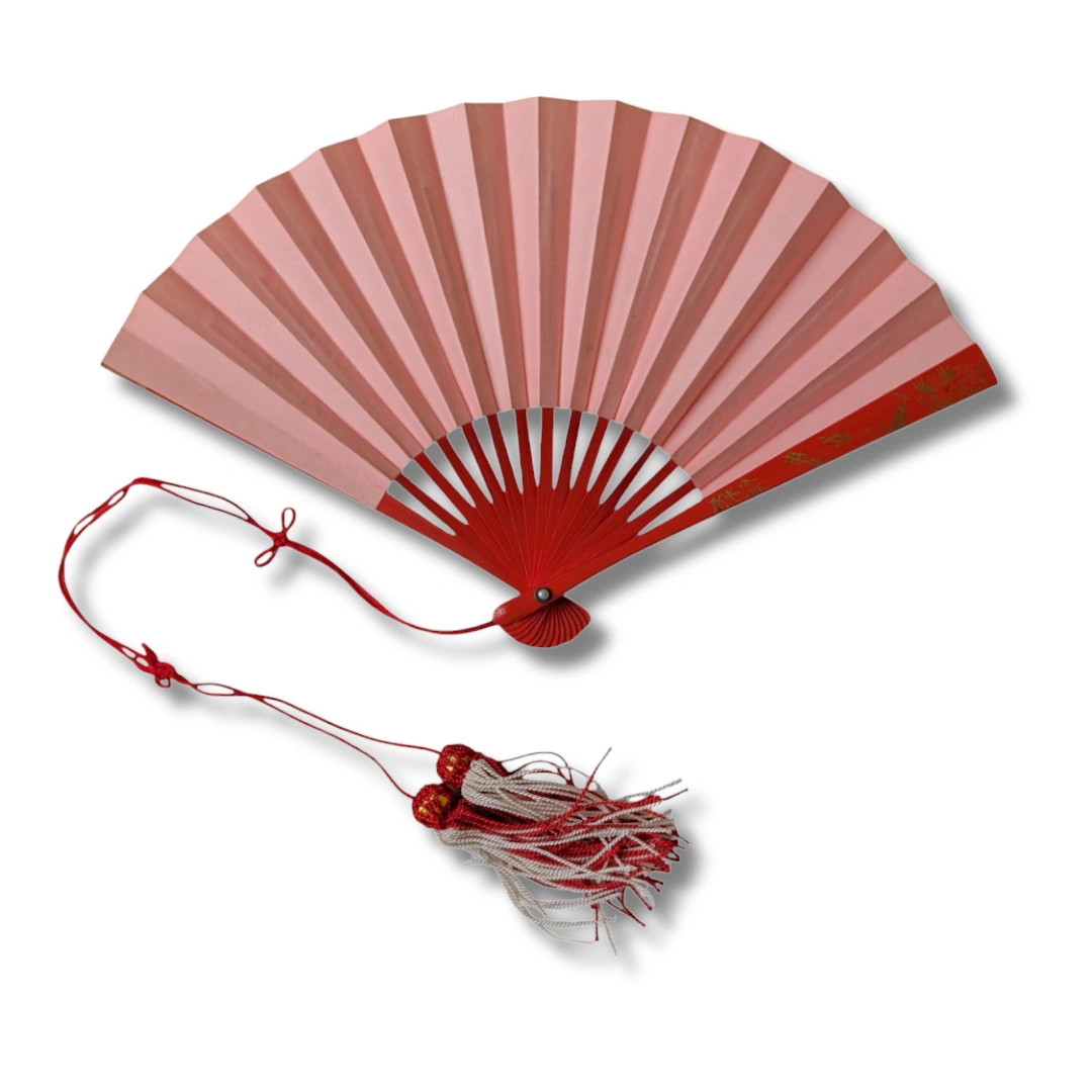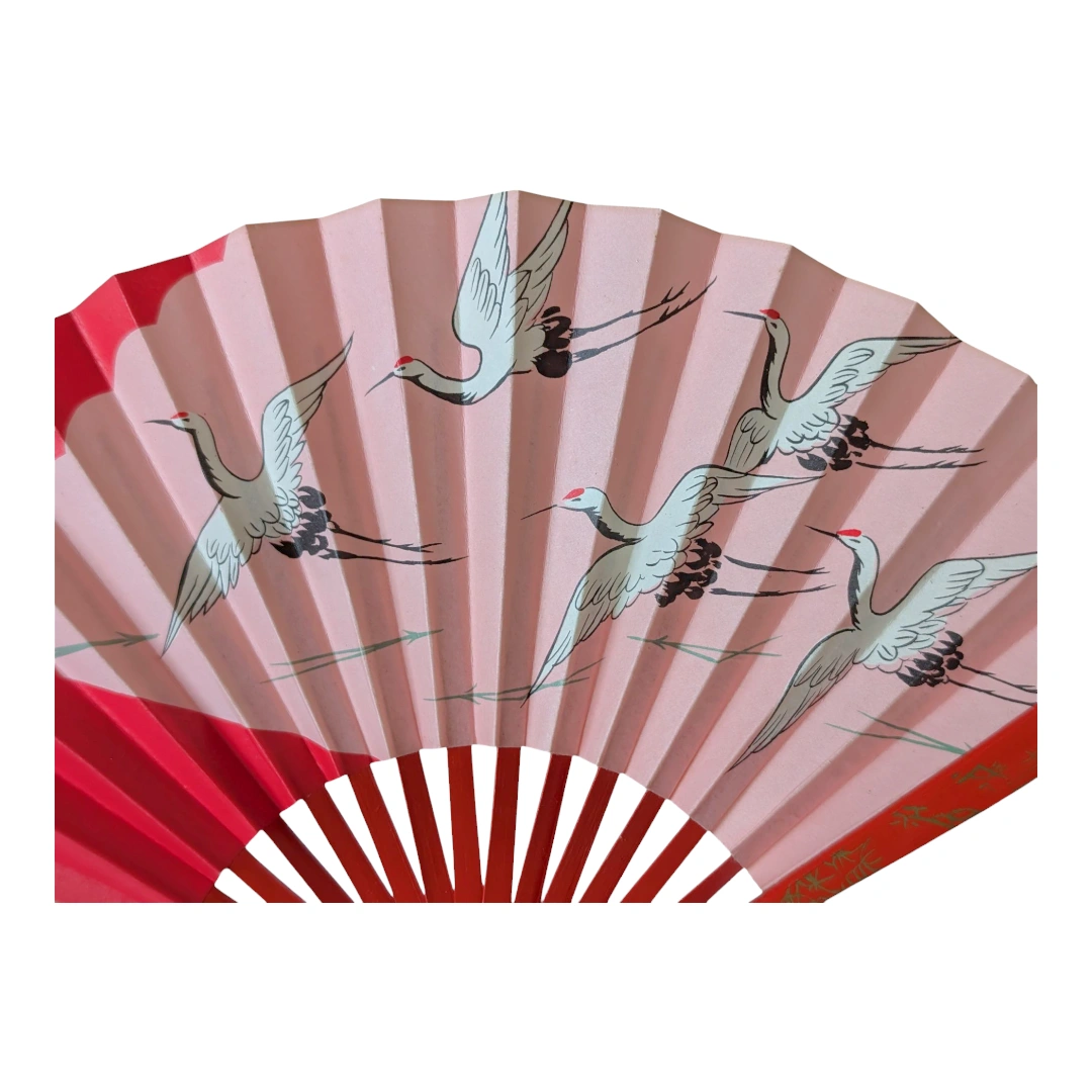 Dieser elegante japanische Fächer zeigt anmutige fliegende Kraniche auf zartem Rosa – ein Symbol für Glück, Langlebigkeit und Frieden. Der Kontrast aus kräftigem Rot und sanften Rosatönen lässt das Design besonders lebendig wirken. Die feine Quaste mit Kordel rundet den Fächer stilvoll ab. Ein perfektes Accessoire für besondere Anlässe oder als kunstvolles Sammlerstück.