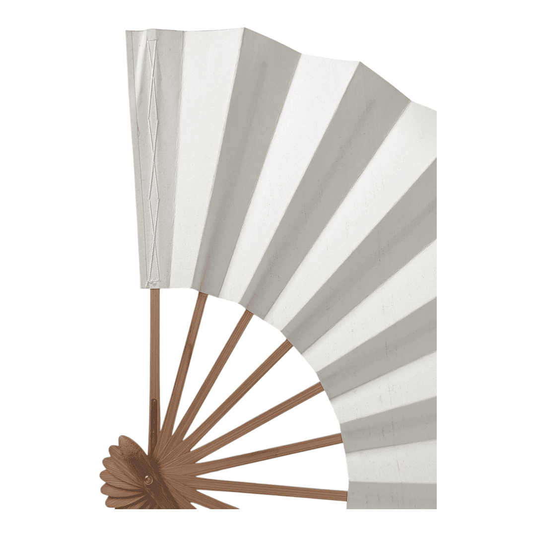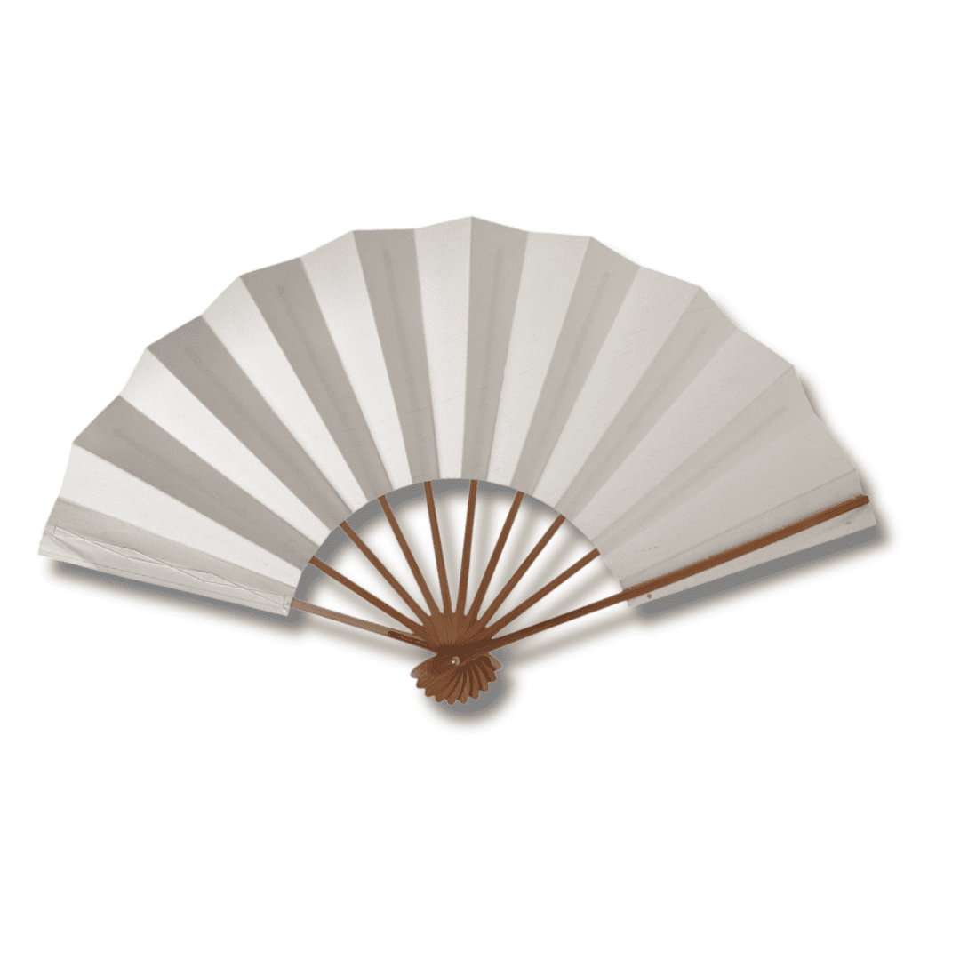 Dieser Fächer (Mai-Ougi / Tanzfächer) ist schlicht, elegant und traditionell – ganz ohne Aufdruck oder Dekor. Die Fächerblätter sind aus naturweißem Washi-Papier gefertigt, das eine leichte Struktur aufweist. Die Rippen bestehen aus unbehandeltem Bambus und unterstreichen den minimalistischen Look.