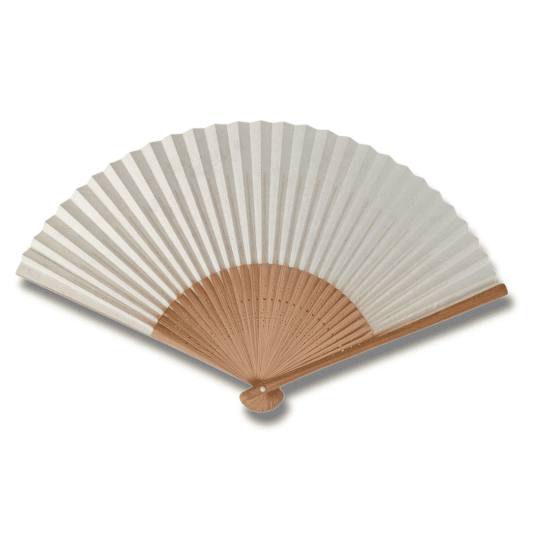 Die Rückseite des Fächers ist schlicht gehalten, was die Eleganz des Hauptmotivs zusätzlich unterstreicht.